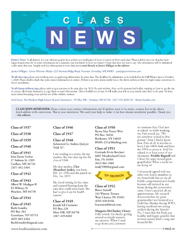 To all class reps, please start working soon on gathering information for your class. The deadline for submission to be included in the Fall/Winter issue is October,