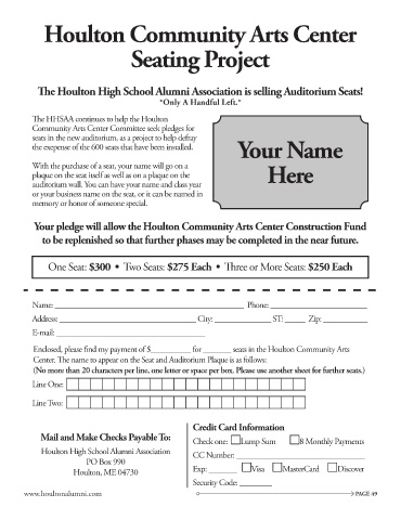 The Houlton High School Alumni Association is selling Auditorium Seats!